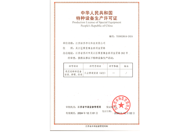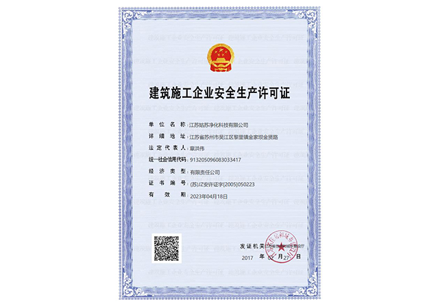 江苏姑苏净化科技有限公司,具有国家电子与智能化工程壹级资质,国家机电安装工程壹级资质,国家建筑装修装饰工程壹级资质 姑苏净化科技有限公司,具有国家机电工程施工总承包贰级、国家空气净化工程二级资质,国家电子与智能化工程二级资质,国家机电安装工程二级资质,国家建筑装修装饰工程二级资质,消防设施工程专业二级资质企业。